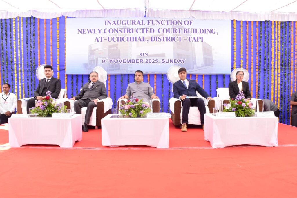 માહિતી બ્યુરો, તાપી તા. ૦૯ :- ગુજરાત રાજ્યના નાયબ મુખ્યમંત્રી તથા ગૃહ રાજ્યમંત્રીશ્રી હર્ષભાઈ સંઘવીએ તા. ૦૯ નવેમ્બર, ૨૦૨૫ ના રોજ ઉચ્છલ તાલુકા ખાતે નવીન સિવિલ ન્યાય મંદિરનું લોકાર્પણ કર્યું હતું.